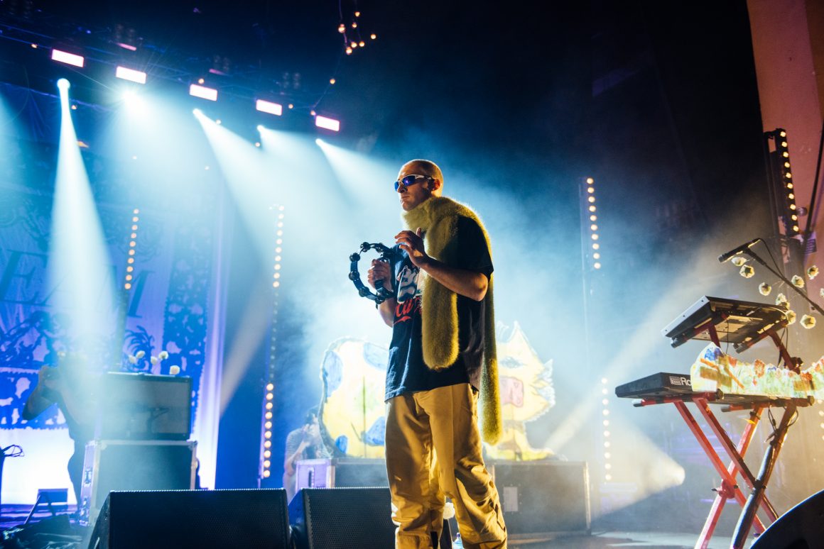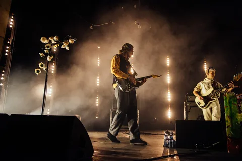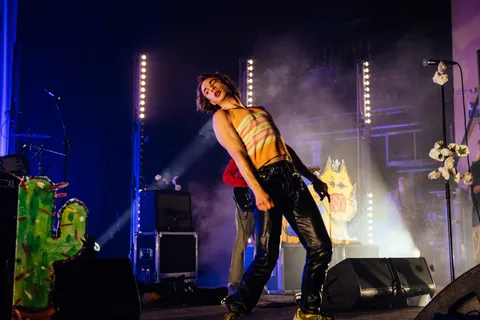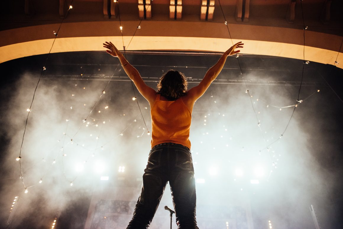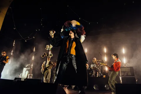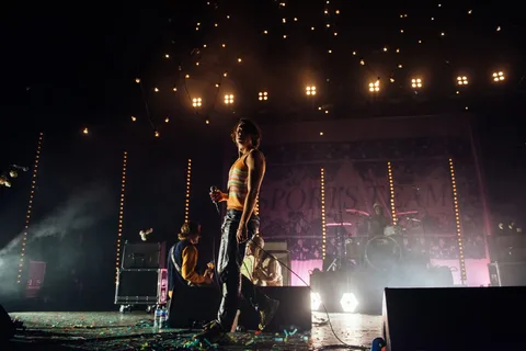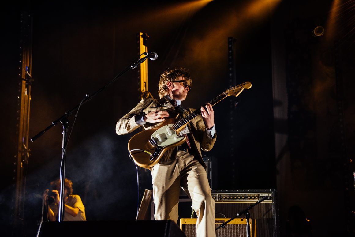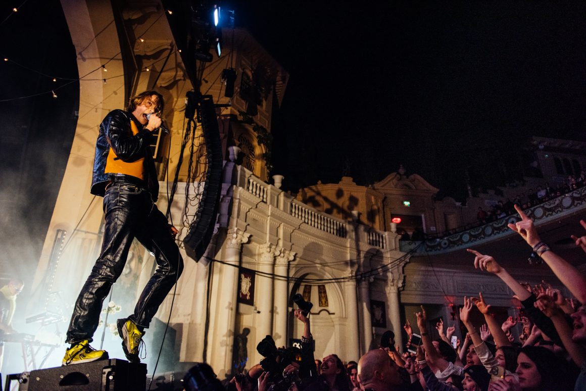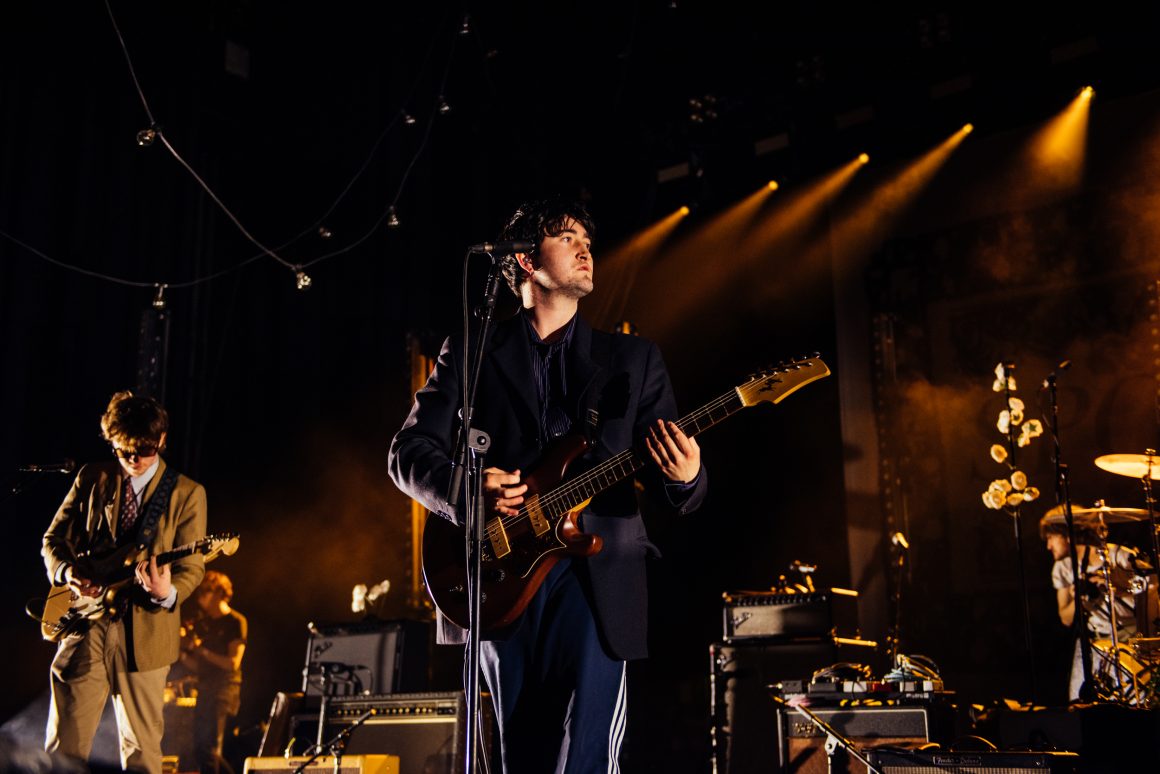 By the end of the one-two punch of ‘Here it Comes Again’ and ‘Going Soft’, Rice has stripped down to a vest and leather trousers, presumably to better facilitate bounding around stage and dancing like he’s trying to pull a muscle. ‘Margate’ is up next, with the band flexing the biggest show of their career by setting off confetti cannons just three tracks into the set. A pause follows, with the seething masses grateful to catch their breath. Ever the charmer, Rice takes the opportunity to tell them that they’re “the greatest fans in the world”, although we don’t think he’s a very objective source for that.