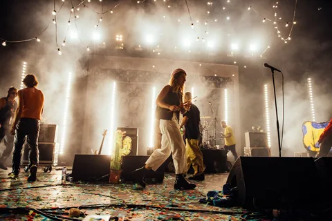 It’s a trajectory that opening support act Courting will be hoping to imitate, not that they’d dream of imitating anything else about Sports Team (ahem - Ed.) All jokes aside, they’re on top form, balancing bangers like ‘Grand National’ and ‘Popshop!’ with wonky covers of Nicki Minaj’s ‘Starships’ and…the Friends theme tune? The crowd leap around like they’re seeing the headline act, especially when frontman Sean Murphy-O’Neill breaks out the cowbell.
