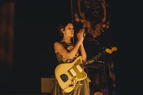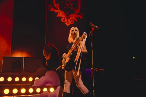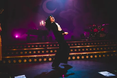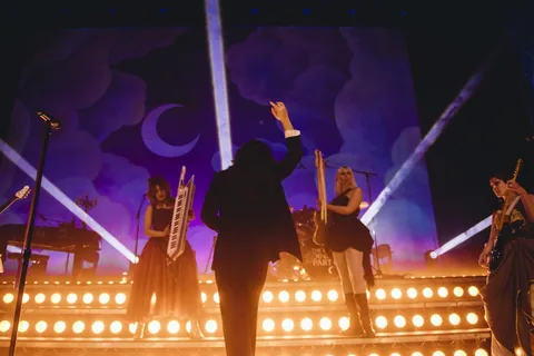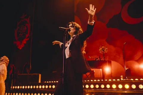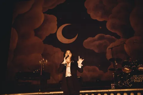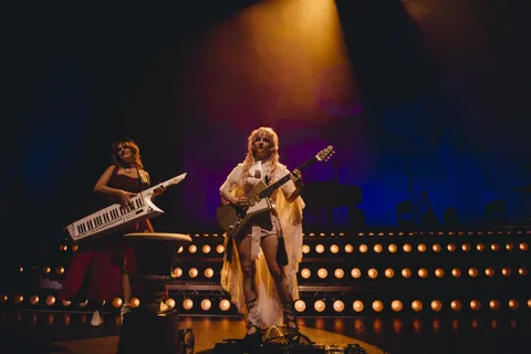Prelude To Ecstasy' scores the Eventim Apollo, 'Burn Alive' and 'Caesar On A TV Screen' fizz across the venue. With blinding Vegas-style lights, disco balls and the spotlight firmly on them - they revel in the playfulness it represents, yet with the swagger of a band firmly in control of the story they're telling. They've not compromised a single second, creating the sort of live show that pulls you firmly into the setting in which The Last Dinner Party's story plays out.