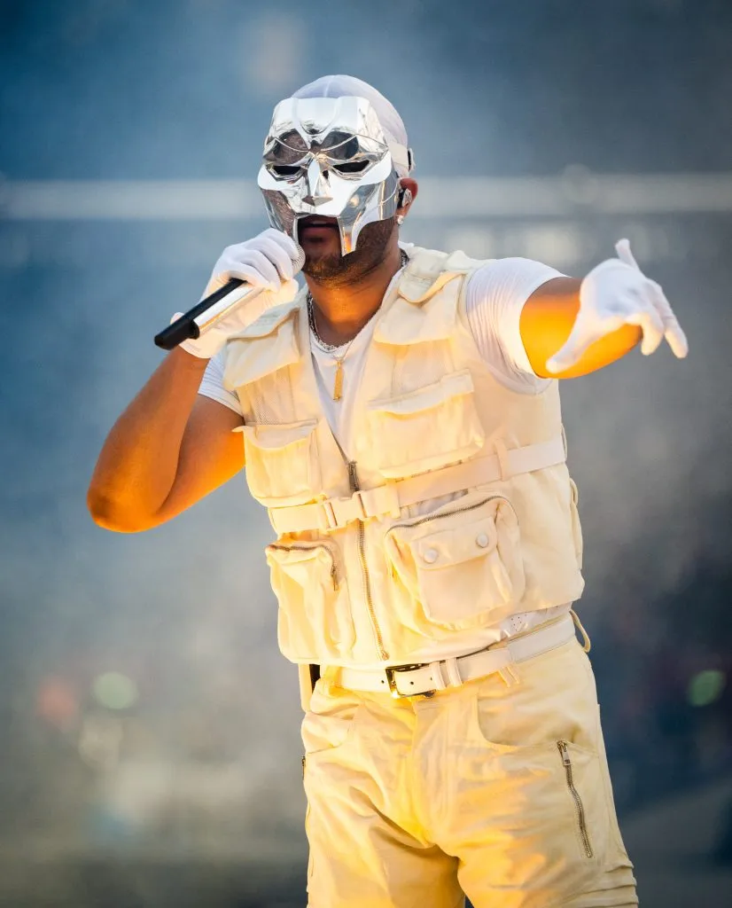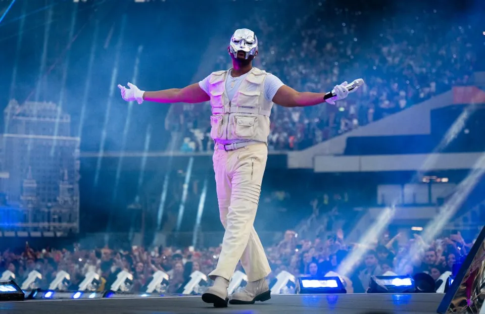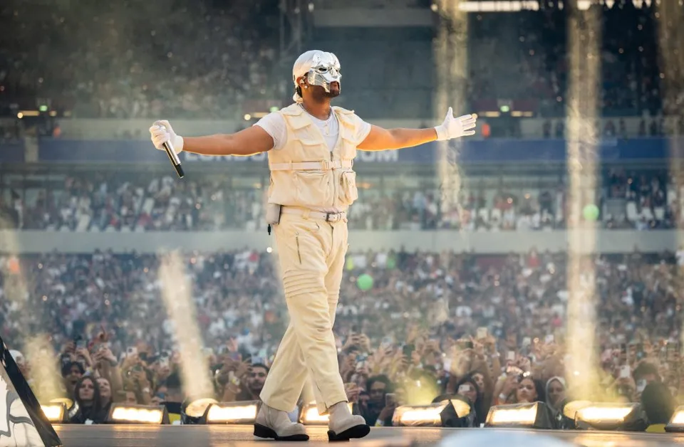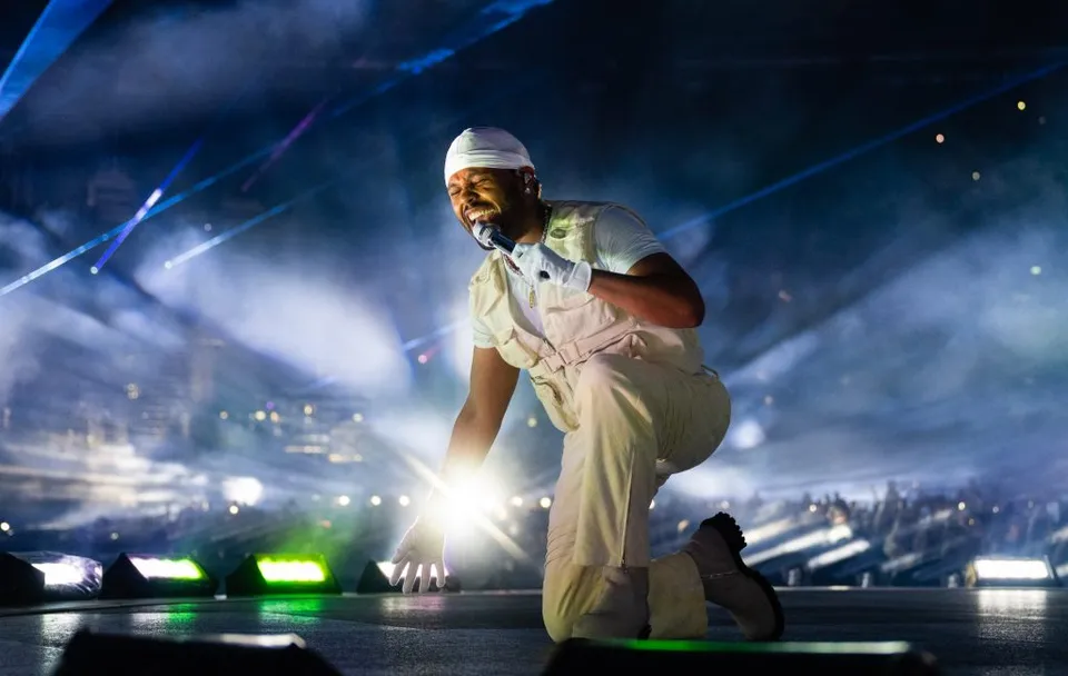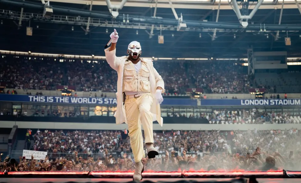 Don't for a moment doubt that those humble beginnings mean he is not ready for this - he is and then some. The show feels set up to showcase The Weeknd's catalogue in the most cinematic of settings. Dancers are clad in uniforms of white, accompanied by flames bursting into the sky to the likes of 'The Hills' and the bouncing 'Can't Feel My Face'. Sheer pandemonium greets openers 'Take My Breath', 'Sacrifice' and 'How Can I Make You Love Me'. It's a breathless run that thrives on the adrenaline of hit after hit after hit. The broken metropolis the show creates puts us firmly into The Weeknd's mind, an underbelly of seediness and danger that becomes the biggest show around. 'Kiss Land', 'Often' and 'Crew Love' see singalongs ring throughout the crowd. The Weeknd's DNA can be felt across every fibre of the music while still feeling trail-blazing and fresh. More than anything, tonight doesn't feel like a victory lap with the sole purpose of celebrating how successful he's become. In its theatrics and design, this show feels like a vital next chapter in the story of The Weeknd.