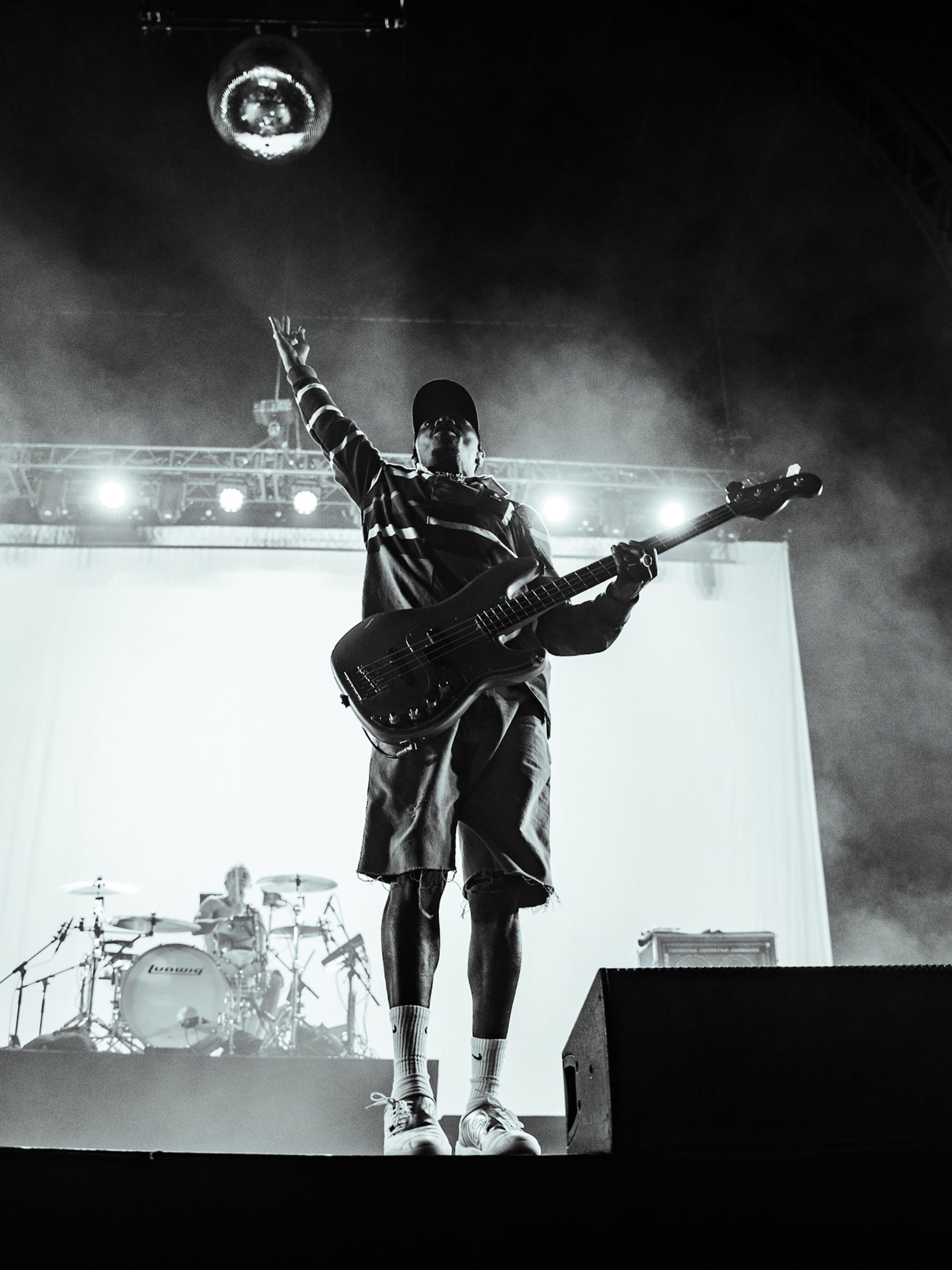 It’s the songs from new album ‘NEVER ENOUGH’ that really make the most sense, though. Aggressive but playful. Mean yet optimistic. Ferocious but still incredibly poppy, there’s no other band doing it like Turnstile. A mash-up of ‘I CARE’ and ‘DULL’ is dreamy without losing any of the band’s urgency, the euphoric hammer of ‘SEEIN’ STARS’ makes use of a giant disco ball, while the scuzzy ‘LIGHT DESIGN’ sounds both polished and unhinged. The same can be said about the band’s unrelenting onstage energy, while a giant video screen broadcasting the sheer chaos of the front rows dials up the intensity and sense of togetherness even further. Of course, there’s a stage invasion for the closing riot of ‘BIRDS’.