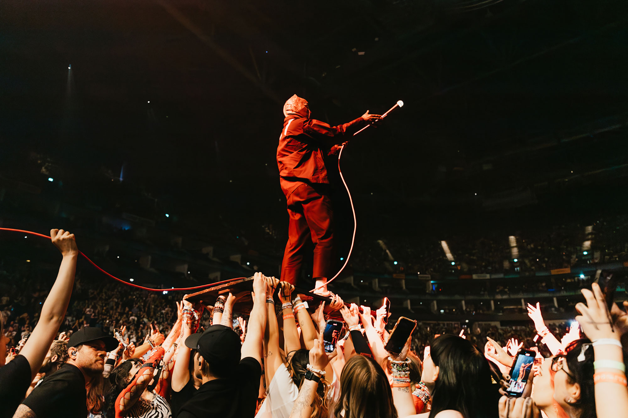 The dance between intimate connection and bombastic rock show comes to a head at the very end of the night. ‘Midwest Indigo’ sees the pair throwing themselves about the stage like they’re still practising in a garage somewhere in Ohio, while ‘Trees’ has them relocate their instruments to the very middle of the pit. It’s the sort of thing you might see in a grubby basement venue, but the band makes it work in this 20,000-capacity arena. As that celebratory chorus kicks in, the entire place moves as one and their motto of, “We are Twenty One Pilots, and so are you” has never felt more brilliantly accurate.
