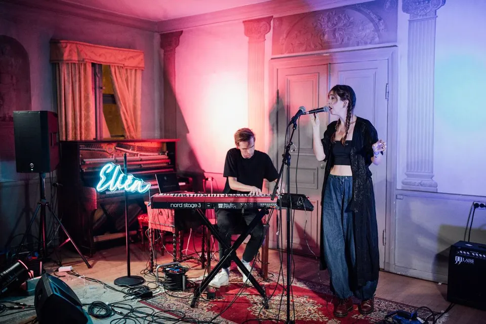 Across the street, Gothenburg's only preserved wooden townhouse is far from a typical gig venue. But then again, the shows held here over the course of Viva Sounds are hardly typical shows. Next to her name in neon lights inside a room littered with postcards, Eliën's set is as much performance art as it is a musical showcase. Between songs, she talks instinctively of connection, of turning her campervan into a makeshift venue and taking it on a road trip across Europe, of the messages people she played for left her on the backs of postcards, and how those messages shaped the songs that make up her album. It's these songs she plays tonight, echoing synths and soaring vocals filling the historic venue with captivating new stories.