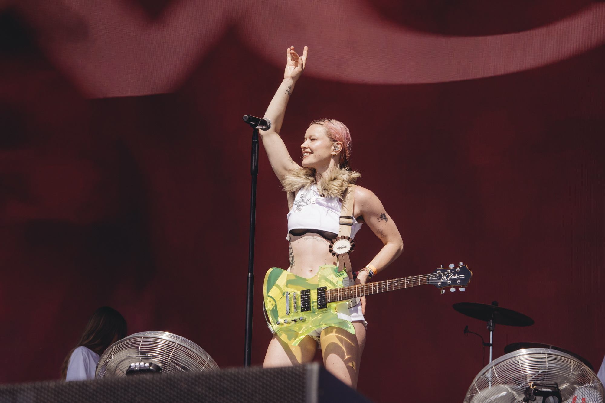 With just days to go until new album ‘Moisturiser’ is released, it still feels like Wet Leg are incapable of putting a foot wrong. A flawless debut album and a run of pre-release singles for the follow-up which are just as good, they stride out to a well-deserved mob of fans. Singer Rhian Teasdale has spent the last few years becoming a very good frontwoman, going from theatrically disaffected eyerolls to bicep-flexing on ‘catch these fists’, and selling new single ‘davina mccall’ with so much energy that the crowd respond to it like an old favourite.