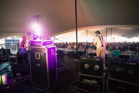 The schedule boasts a ton of alumni from the now iconic Brixton Windmill, barely a kilometre away, but the band who come out at the front of the pack is unquestionably Jockstrap. The Moth Club tent is rammed and stifling when the duo arrive to showcase last year's debut 'I Love You Jennifer B', in the day's most enthralling hometown victory lap. When glitter-clad Georgia Ellery announces, "It's time to dance", she's not kidding; a bombarding remix of Debra has the crowd wrapped around her finger where they remain through pivots to folky anthems ('Glasgow') metallic tearjerkers ('Concrete Over Water') and back again; when '50/50' hits its climax, there's not a body stood still. When they bounce joyfully off stage, Taylor Skye giving the front rows a good soak with a water pistol en route, it's as though a fraction of their 40-minute slot has passed.