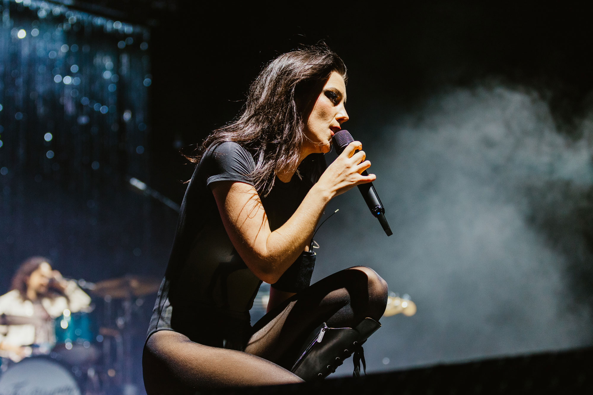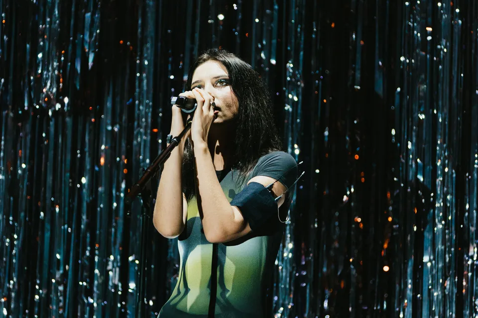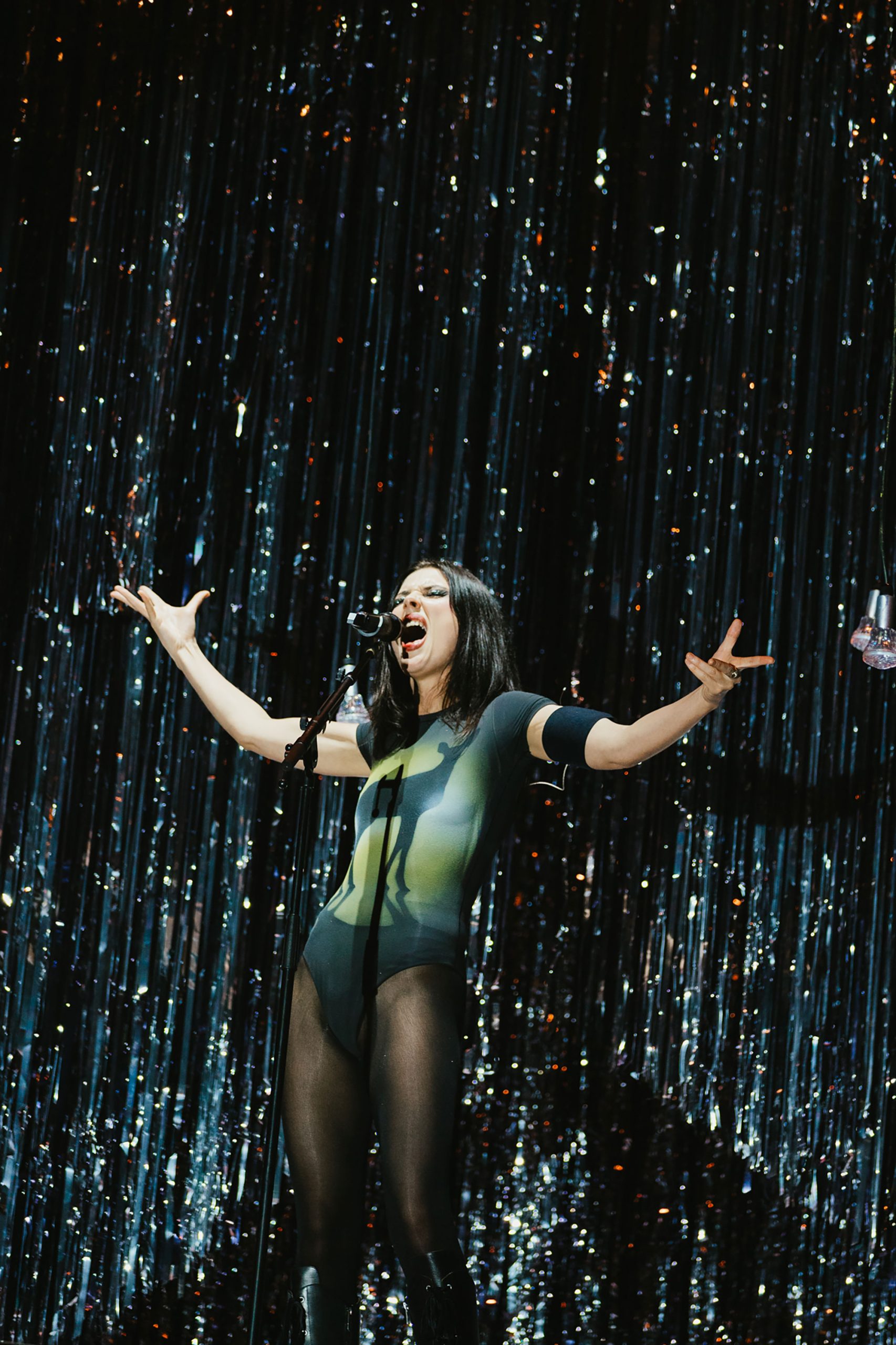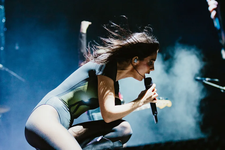 There’s a stripped-back ‘Safe From Heartbreak’ that sees the band huddled together at the very front of the stage before that intimacy is transformed into a venue-wide dose of scream therapy. ‘Yuk Foo’ is a wailing beast that has Ellie yelling down a megaphone and spinning around on a giant turntable while the dreamy fairytale theatrics of ‘Silk’ prove the band has always been more than a grungy rock mob. Though they’re great at that too, with the reliable carnage of ‘Giant Peach’, the snarling stadium anthem ‘Play The Greatest Hits’, and the surprisingly rowdy ‘How Can I Make It Ok?’ causing boisterous chaos throughout the room. You want danger? Ellie stacks it during ‘Formidable Cool’, which is as perfect a time as any for her first onstage trip.